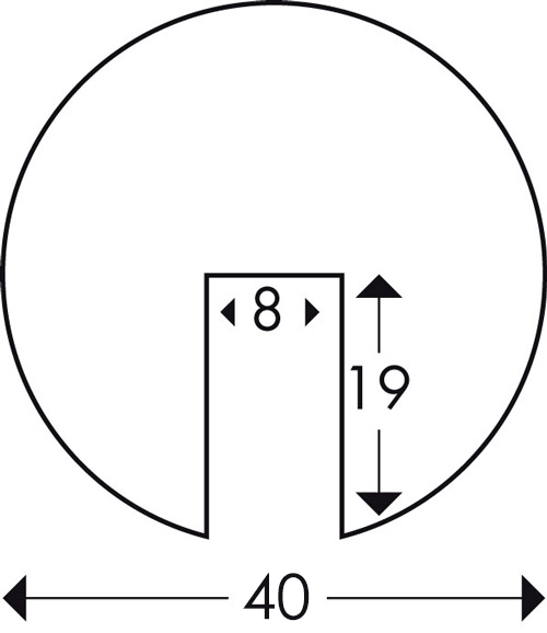 Tiene un diámetro de 40mm, unas medidas interiores de 19x8mm y el largo de la pieza es de 1 metro.