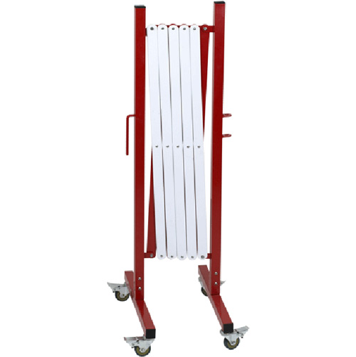 Barrera extensible modular: Equipada con ganchos para poder unir varias barreras juntas, lo que permite que la delimitación de la zona se vaya adaptando a los avances de los trabajos. Estable y muy visible, se puede extender hasta los 2,50m. Sus dimensiones cuando está cerrada son 200 x 400 x 960mm. Se desplaza fácilmente gracias a sus ruedas (opcionales, disponibles en packs de 4 ruedas con freno, atornillables a los pies de la barrera). Peso 7kg.