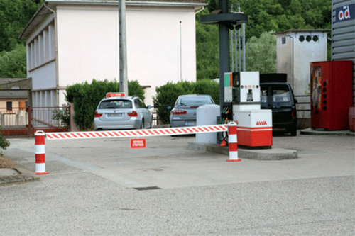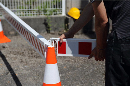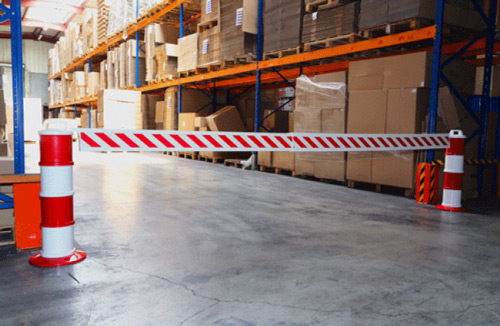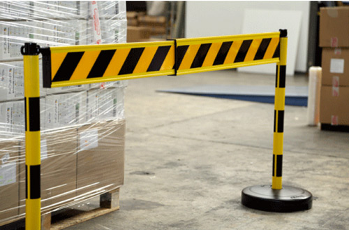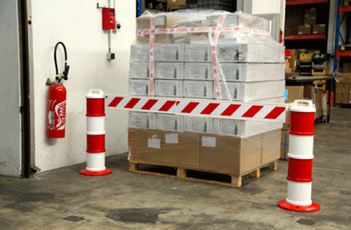 Barrera de PVC solida y rígida que se adapta a la longitud necesaria para delimitar una zona de mantenimiento, construcción…
