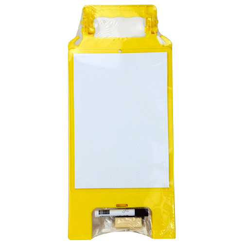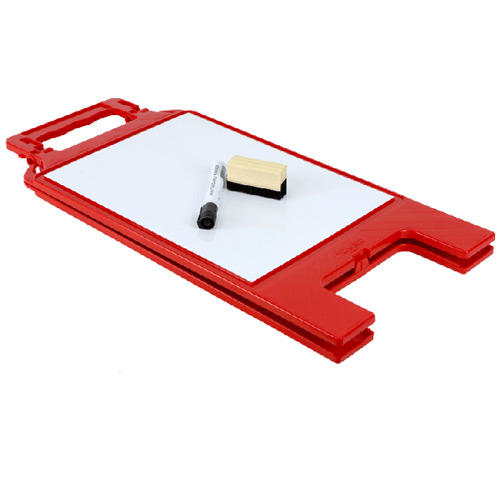 Tiene una gran superficie para dar mayor visibilidad al mensaje. Las dos caras del caballete están cubiertas por una lámina de pizarra blanca.