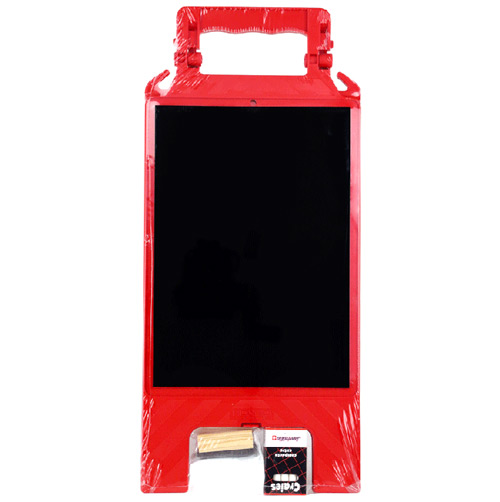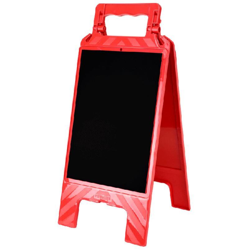 Tiene una gran superficie para dar mayor visibilidad al mensaje. Las dos caras del caballete están cubiertas por una lámina de pizarra.