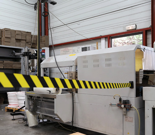 Soporte fijo con cinta retráctil para delimitar zonas.