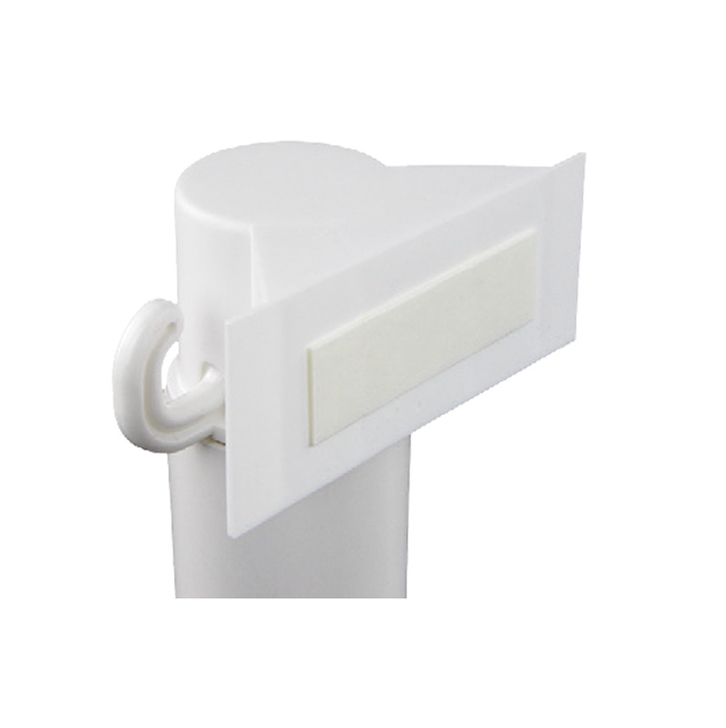 Equipado con una superficie autoadhesiva para fijar un panel, y 2 ganchos para poder fijar a su vez cadenas de balizamiento.