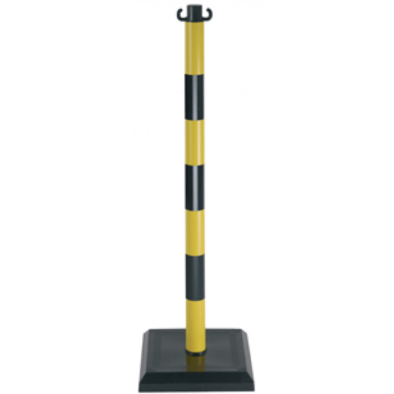Tiene una altura de 90cm y un diámetro de 50mm sobre base de polietileno equipada con un relleno de hormigón. Las dimensiones de la base son 280x280x50