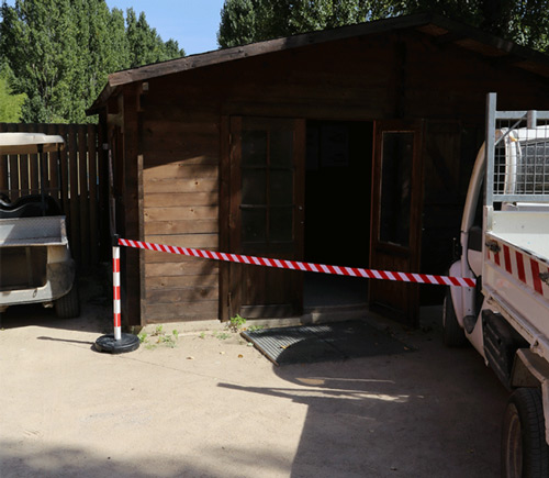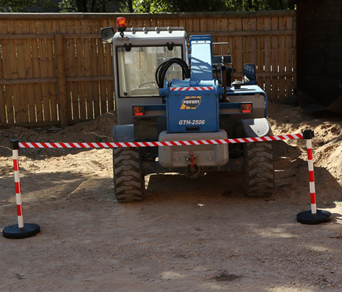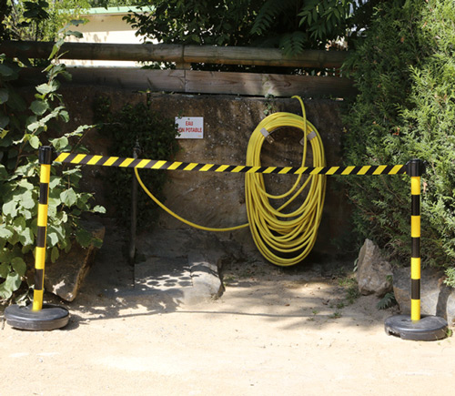 Poste de PVC con cinta retráctil para delimitación sencilla y temporal de zonas.