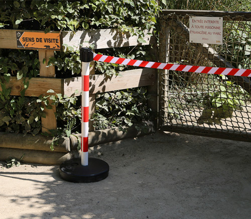 Poste de PVC con correa retráctil para delimitación de zonas de manera sencilla, efectiva y temporal.