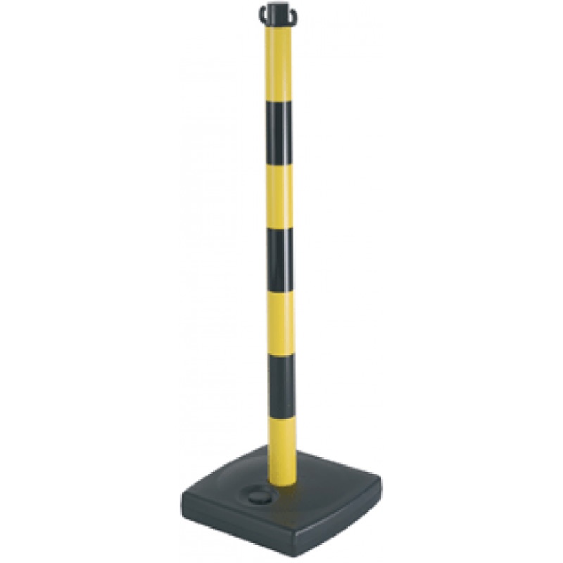 Tienen una altura de 90cm y un diámetro de 50mm sobre base de polietileno. La base se puede rellenar con arena o gravilla hasta alcanzar unos 4kg de peso. Las dimensiones de la base son: 280 x 280 x 50mm.