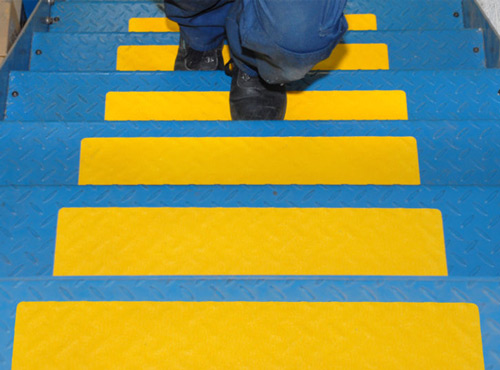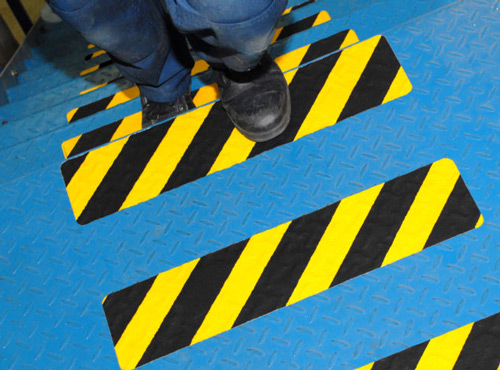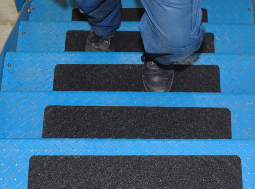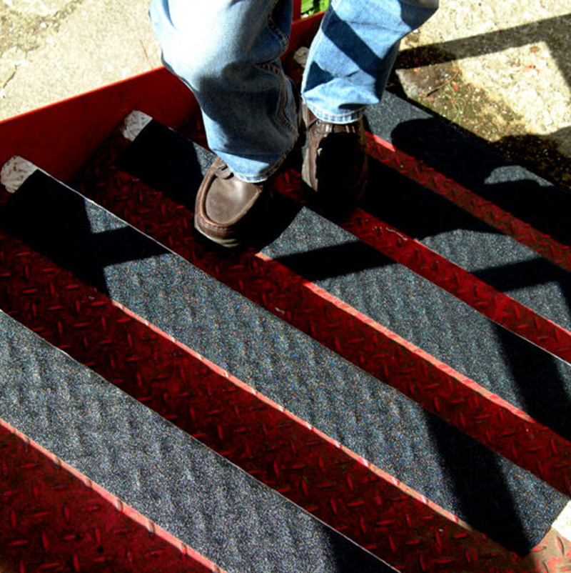 Cinta antideslizante autoadhesiva formada por partículas de óxido de aluminio abrasivo, sobre una lámina de aluminio blanda, indicada para superficies irregulares.