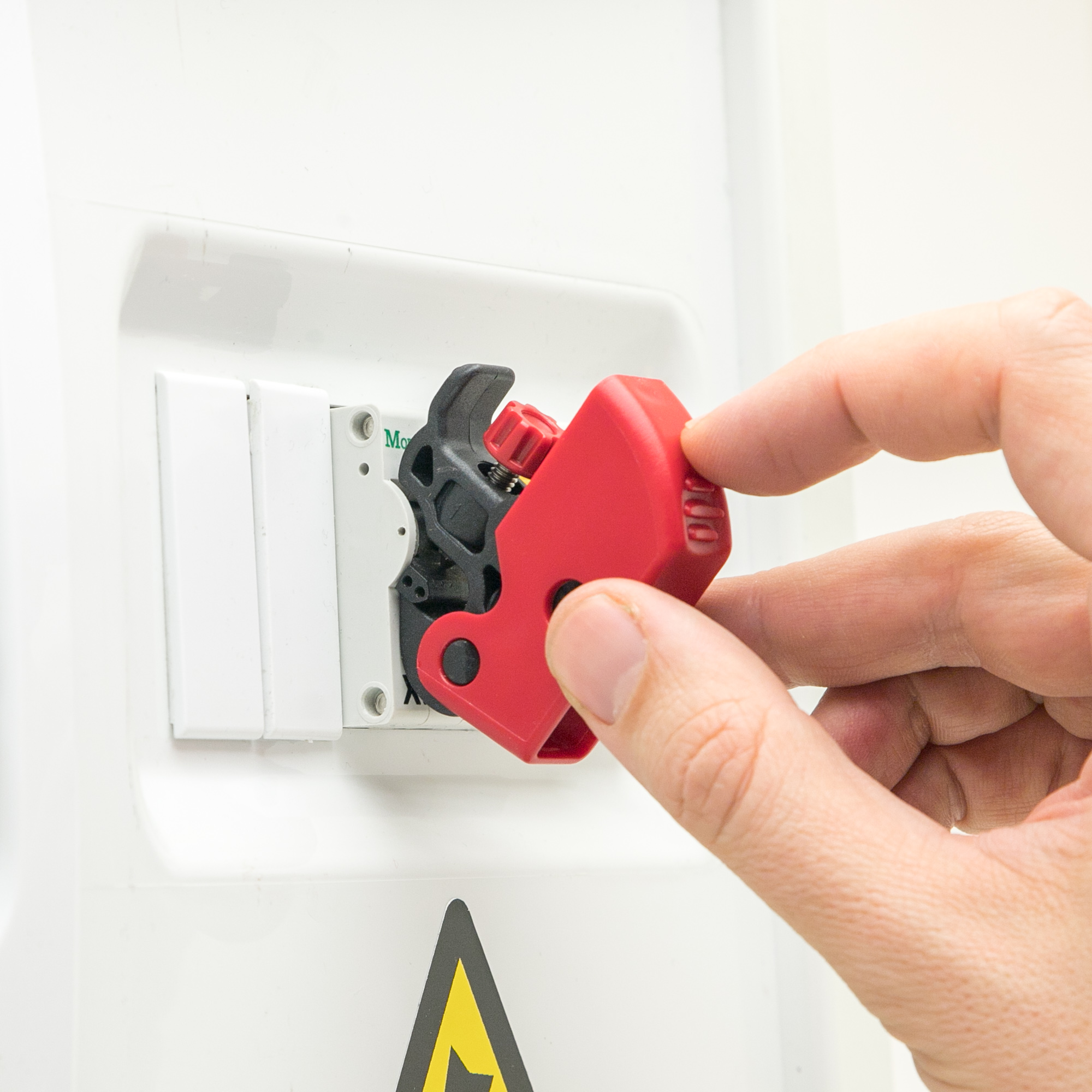El Minibloqueo Universal para Disyuntores es un elemento de consignación que permite bloquear casi todos los disyuntores de tamaño pequeño tipo ISO / DIN del mercado.