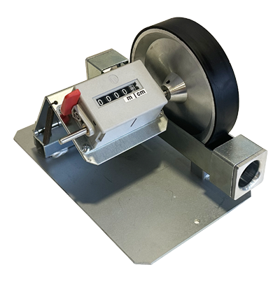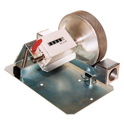 - Rueda de medición de 35 mm de ancho con un desarrollo de 500 mm, disponible en metal estriado o poliuretano (para cables metálicos)